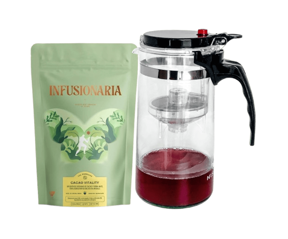 Una jarra infusora de vidiro borosilicato, resistente al calor, capacidad 800ml.
